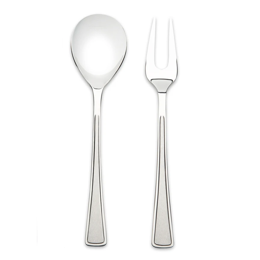 Este set de dos cubiertos para servir forma parte de la cubertería Ramona, diseñada por Odd Leikvoll para la marca noruega Hardanger Bestikk. El conjunto consta de una cuchara y tenedor de servir que al igual que el resto de cubiertos de la misma colección Ramona, tienen un elegante diseño en acero inoxidable y están hechos a mano en Kinsarvik (Noruega). ¡El set de cubiertos para servir se adapta tanto para el día a día como para ocasiones más festivas, y se combina fácilmente con diferentes tipos de cristalería y vajilla!