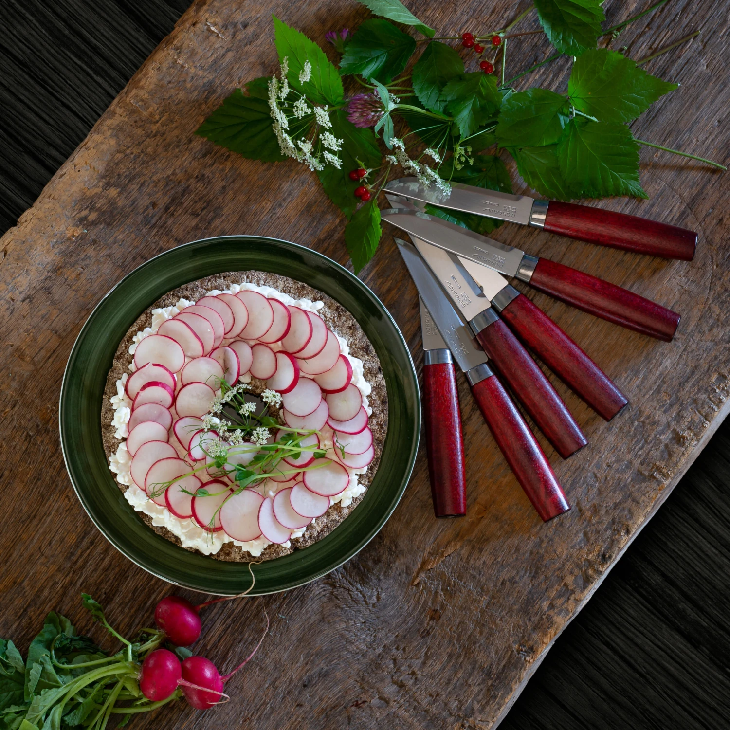 - MaterialesMateriales: Abedul, acero inoxidable