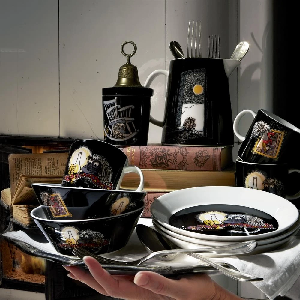 La encantadora jarra Mumin Ancestor viene de la marca finlandesa Arabia y tiene un diseño agradable donde podemos ver a Ancestor: una de las figuras de los Mumin (también conocidos como los Moomin) de Tove Jansson. Como su nombre indica, Ancestor es el antepasado de todos los Moomin. Es una pequeña figura peluda que vive detrás de la estufa en la casa Moomim. No dice nada en las historias, pero sale por las noches y mueve los muebles de la familia Mumin. ¡La jarra es de porcelana y es ideal para hacerla coincidir con el resto del menaje del hogar de la misma colección!