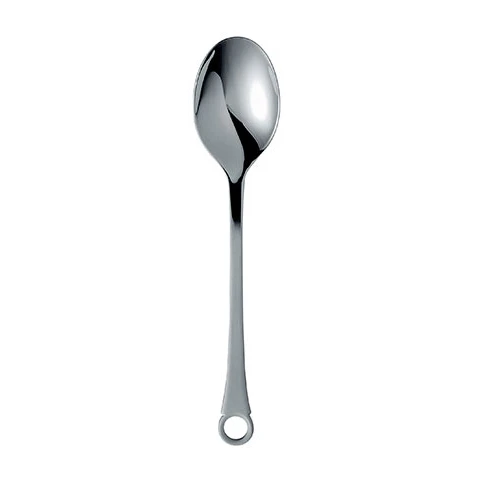 La estilosa cuchara de postre o entrante de la serie Pantry es diseño de la conocida y experimentada marca sueca Gense. La cubertería es especialmente popular en Dinamarca. Su característico diseño con un anillo en el extremo del mango hace que se le llame «cubiertos de marineros» ya que se pueden colgar mientras se navega por el mar. Perfecta para la cocina moderna y para utilizar en el día a día. Combina la cuchara de postre o entrante con el resto de cubiertos de la misma cubertería Pantry.