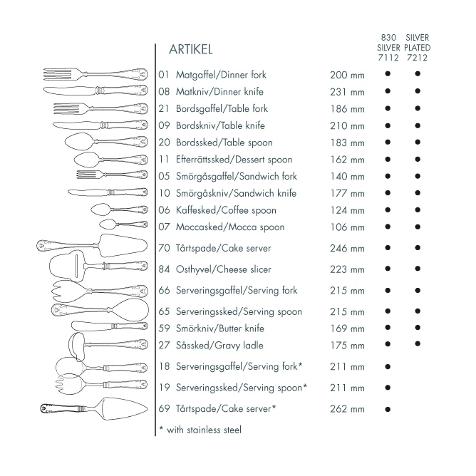 Los cubiertos de plata son aptos para lavavajillas, no limpiar en lavavajillas junto con acero inoxidable.